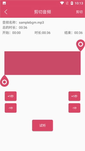 點擊剪輯音頻功能,從手機里添加一段語音,再截取你需要的部分。