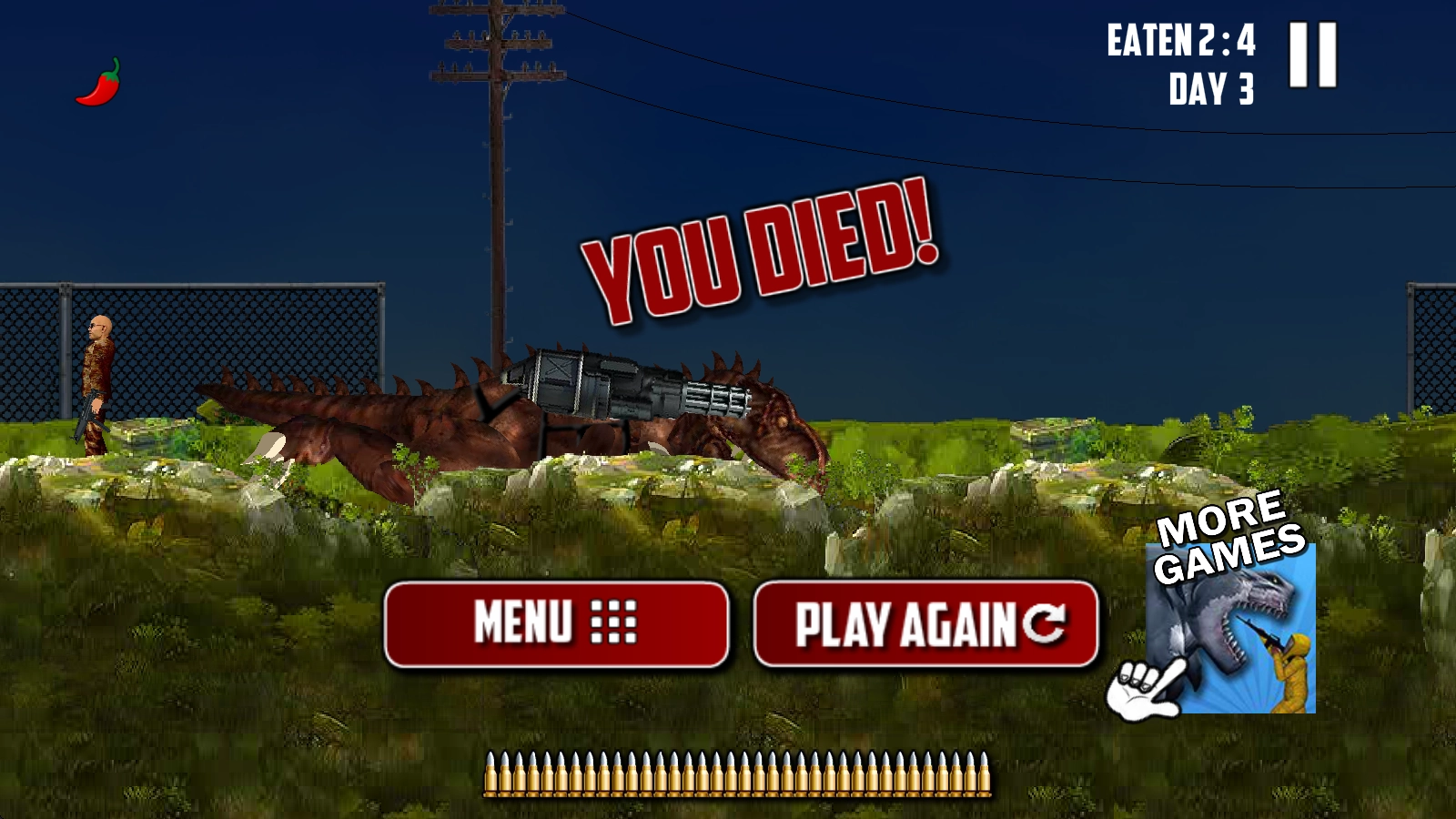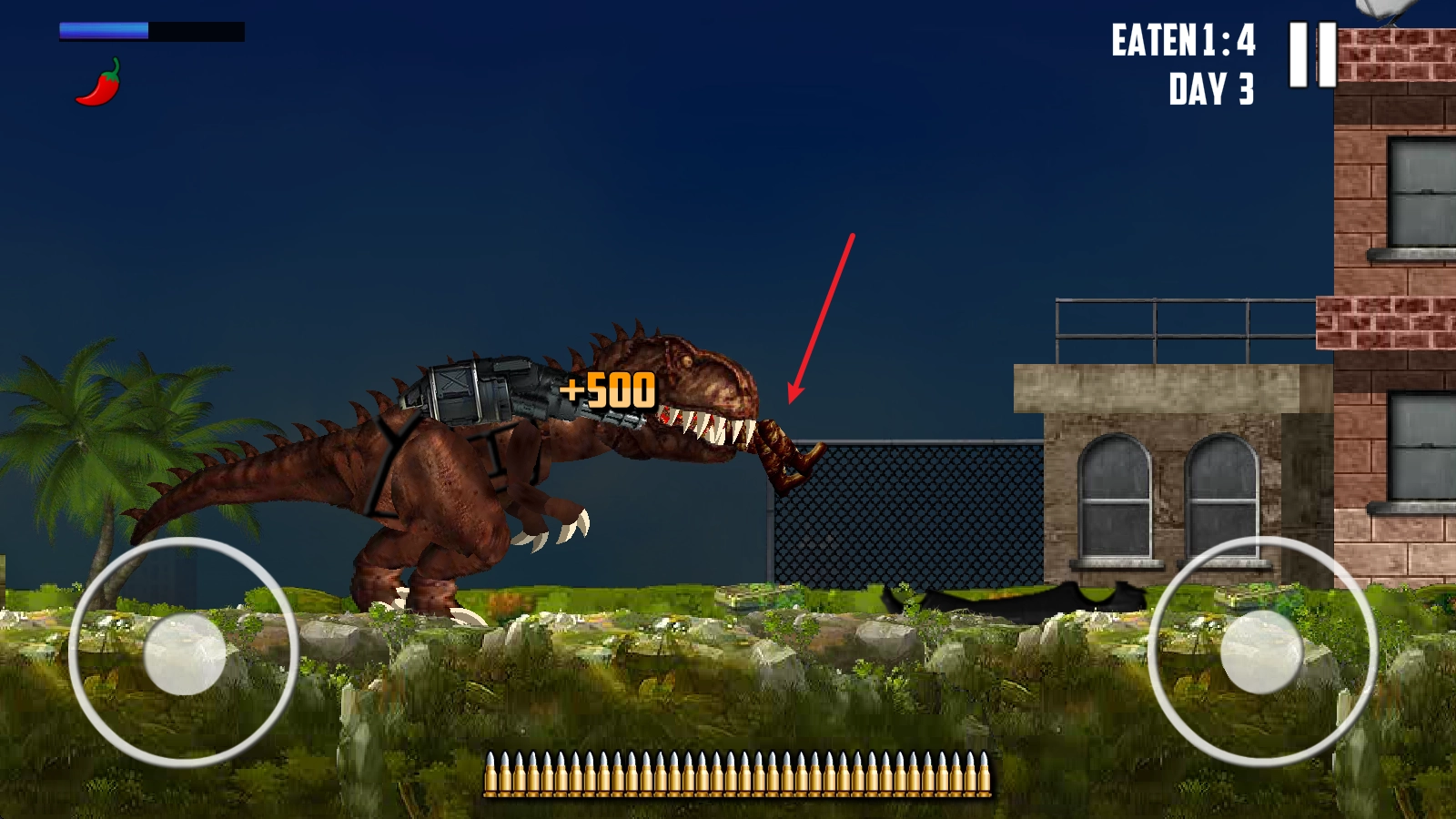 霸王龍覺醒(Mexico Rex)是一款把霸王龍與槍械元素相融合的橫版冒險(xiǎn)闖關(guān)游戲。在游戲里,玩家將操控兇悍的霸王龍一路向前突進(jìn),借助身上配備的槍械來消滅阻擋去路的敵人,消滅敵人后還能直接將其吞噬,獲取相應(yīng)的積分,戰(zhàn)斗結(jié)束后就能取得更高的分?jǐn)?shù)!眾多精彩有趣的關(guān)卡等待你去挑戰(zhàn),去探索更多神秘的場(chǎng)景,解鎖更多有意思的隱藏劇情!