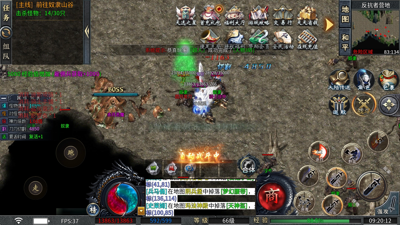 金幣升級:以神骨為支柱、血肉為根基、本源為力量,增強(qiáng)血量恢復(fù)能力,獲得傷害免疫效果,每次攻擊都附帶切割傷害!