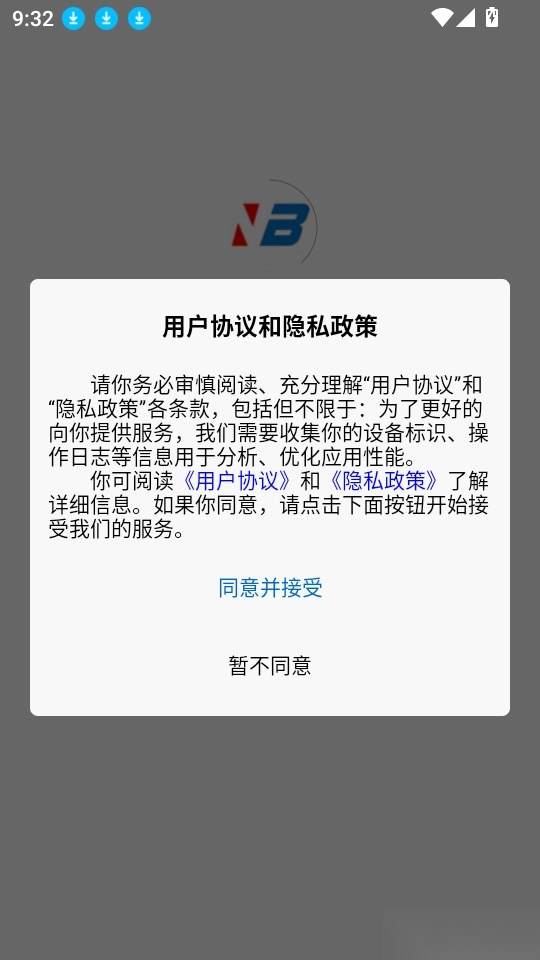 首先打開應(yīng)用點(diǎn)擊“同意并接受”按鈕來進(jìn)入中。
