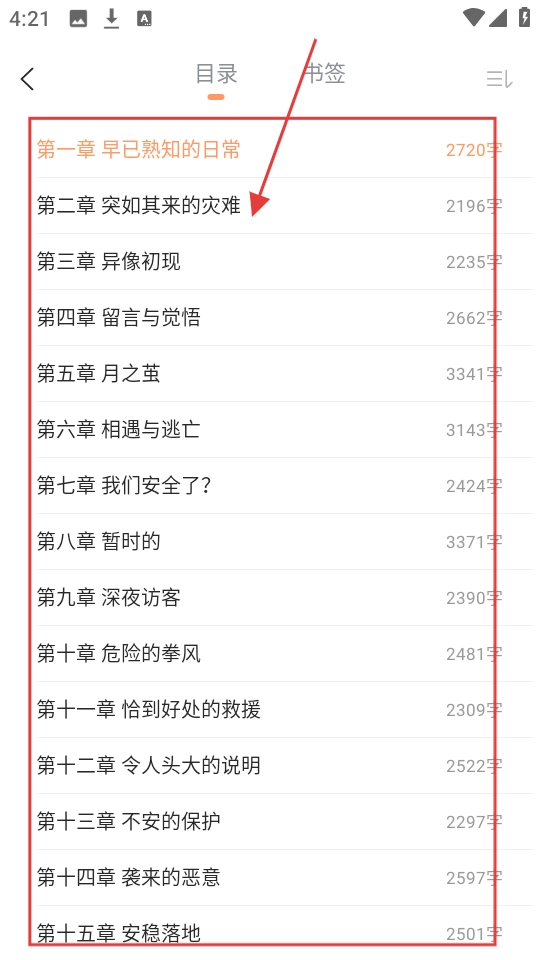 在目錄頁面,列有第一章、第二章等各個章節(jié),選擇你感興趣的章節(jié)并點擊,即可跳轉(zhuǎn)至該章節(jié)進(jìn)行閱讀。