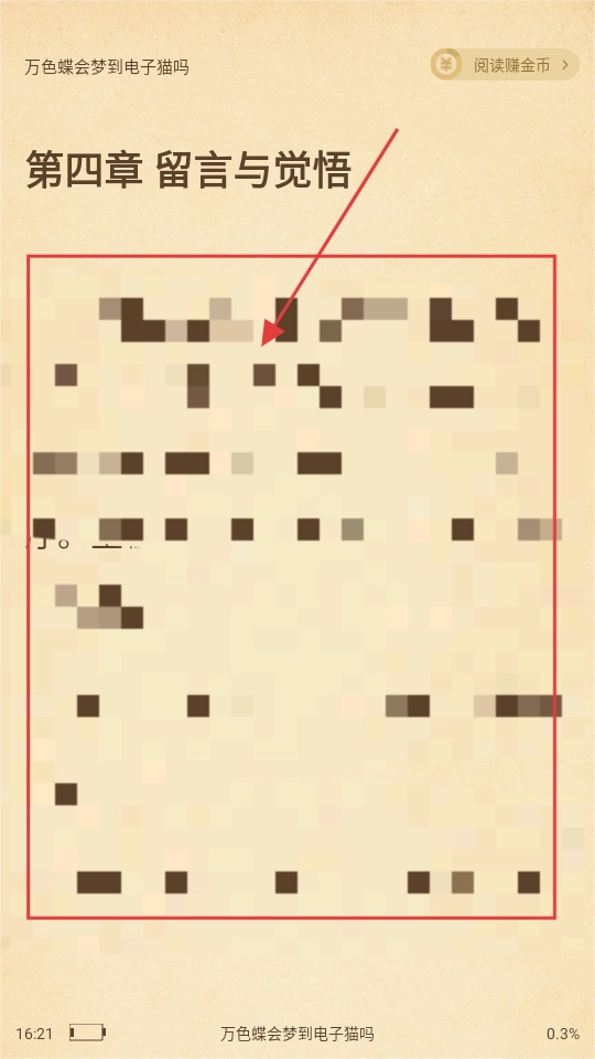 選好章節(jié)后,就能進(jìn)入閱讀界面,沉浸在《萬色蝶會夢到電子貓嗎》的故事里啦。