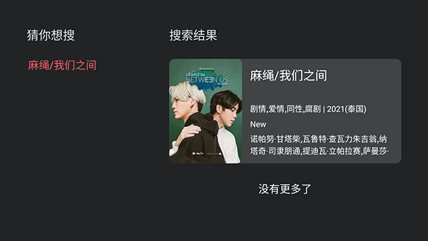 泰劇兔TV電視版應用現(xiàn)已全新上線!該應用完美適配電視端用戶的使用需求,能讓大家盡享在電視端觀看影片的樂趣。其資源與手機端保持同步,還支持搜索等實用功能,并且可免費觀看,全程,手機端用戶同樣可以安裝使用。