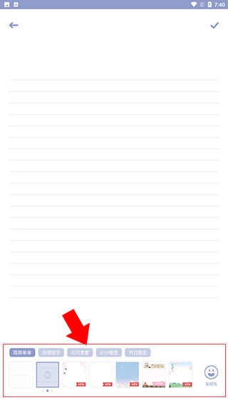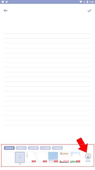 點(diǎn)擊編輯界面下方右側(cè)的按鈕,就能瀏覽并粘貼精美的貼紙,讓你的筆記更具個性和趣味。