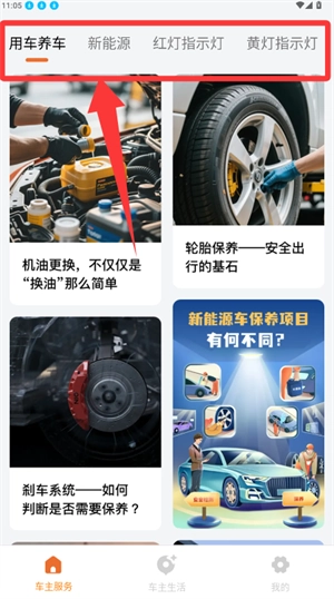 在主頁(yè)面分類標(biāo)簽中,可瀏覽相關(guān)養(yǎng)護(hù)服務(wù)信息。