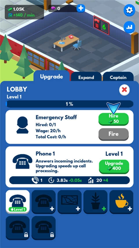 玩家獲得的鈔票獎勵可用于購置餐廳、廁所等各類設(shè)施,同時還需滿足消防員的各種需求。