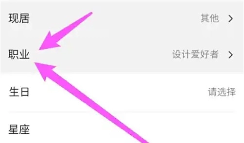 當(dāng)頁面跳轉(zhuǎn)至資料編輯界面后,在表單里滑動(dòng)屏幕找到“職業(yè)信息”字段并點(diǎn)擊。