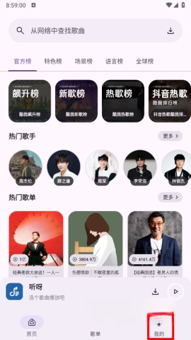 打開聽呀音樂,在首頁中點(diǎn)擊“我的”選項(xiàng)。