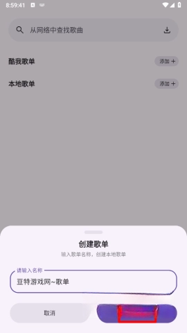 接下來輸入新歌單的名稱,點(diǎn)擊“創(chuàng)建”以完成。