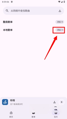 進(jìn)入后在本地歌單旁邊點(diǎn)擊“添加”按鈕。