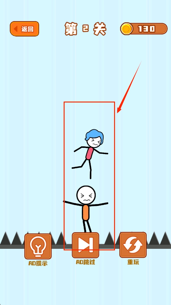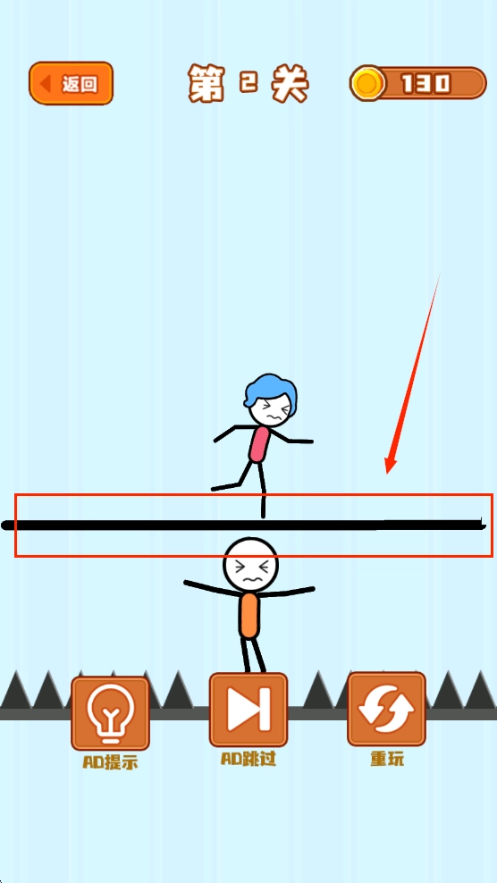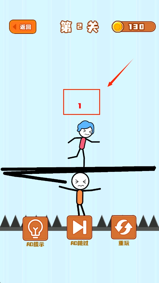 第二關(guān)是要防止上面的火柴人掉下來。