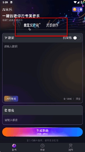 輸入相關(guān)描述內(nèi)容之后,點(diǎn)擊生成歌曲按鈕。