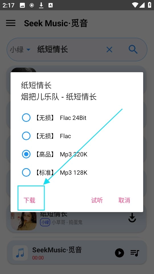 這時候界面上會出現(xiàn)四種音質(zhì),你可以自定義選擇其中一種,還能進(jìn)行試聽。