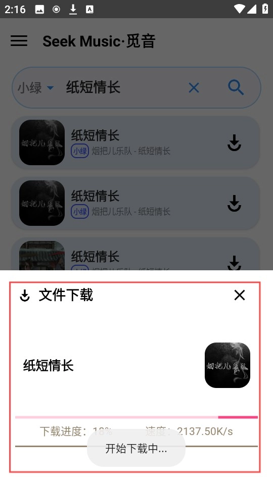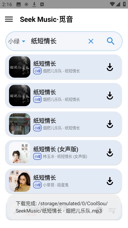 找到你喜歡的歌曲之后,這里以“紙短情長”為例。