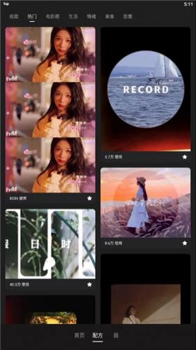 4、在配方里面點(diǎn)擊電影感,使用里面的模板可以讓你也能拍出好萊塢電影大片的既視感。