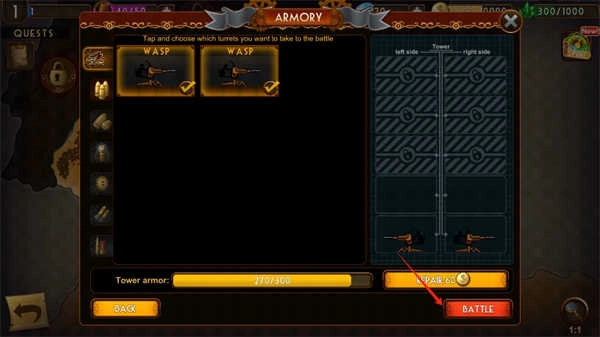 調(diào)整防線并布置炮塔,點擊【BATTLE】即可開啟戰(zhàn)斗。