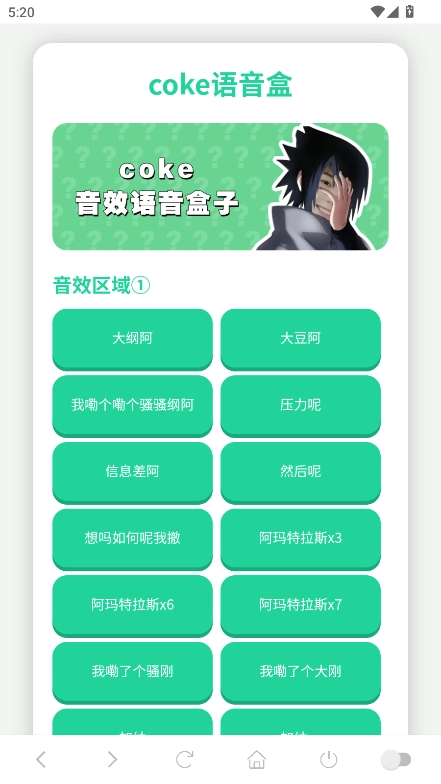 coke語音盒是一款充滿趣味的魔性語音盒應(yīng)用,在這里你能隨心挑選各類語音素材進(jìn)行趣味惡搞,使用體驗(yàn)?zāi)允恪\浖珍浟素S富的阿瑪特拉斯語錄,保證讓你玩得過癮,還有更多魔性玩法等你來探索。話不多說,快來本站下載體驗(yàn)coke語音盒吧!