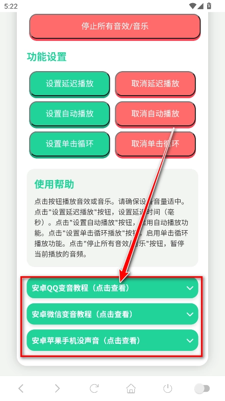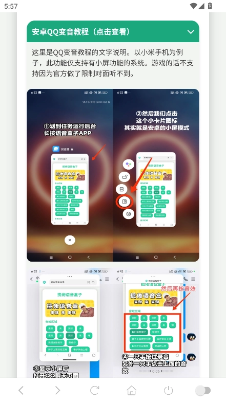 往下滑動(dòng)頁面,你會(huì)看到三種變音教程,接下來我就以點(diǎn)擊第一種變音教程后的“點(diǎn)擊查看”按鈕為例進(jìn)行說明。