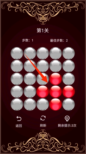 每次點(diǎn)擊處于點(diǎn)亮狀態(tài)的球體,都會(huì)讓它變暗,并且還會(huì)改變相鄰球體的明暗情況,這是對邏輯思維能力的一種考驗(yàn)。