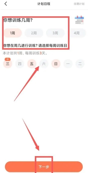 進(jìn)入計(jì)劃日程,選擇周期、時(shí)間,點(diǎn)擊“下一步”