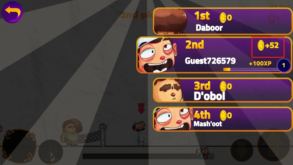 比賽結(jié)束時(shí)我們拿到了第2名,還收獲了52枚金幣。這些金幣我們先存起來,之后可以用來給角色升級技能,或者解鎖新道具,這樣能在后續(xù)比賽中更有優(yōu)勢。