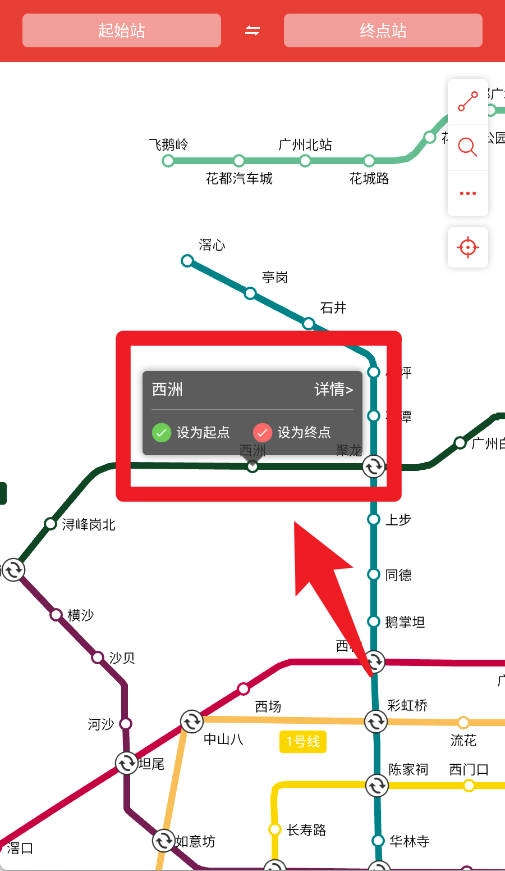 在地圖界面選定站點(diǎn)后,能夠?qū)⑵湓O(shè)置為起點(diǎn)或者終點(diǎn),從而迅速完成出行路線的規(guī)劃。