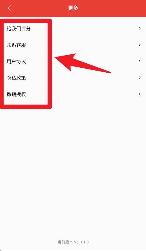 在更多功能頁(yè)面里,設(shè)有用戶協(xié)議、隱私政策以及聯(lián)系客服的入口,以此保障用戶的使用體驗(yàn)。