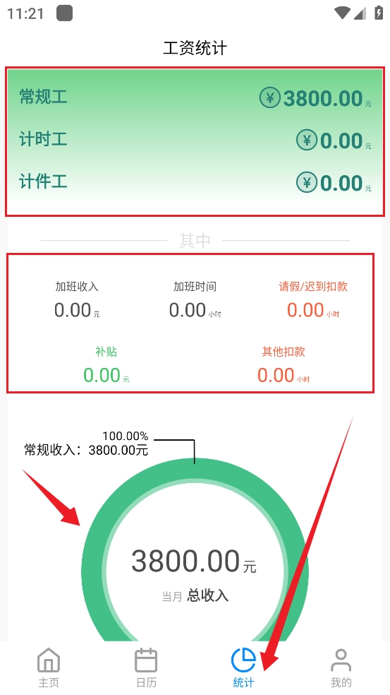進(jìn)入【日歷】界面后,用戶能夠查詢到當(dāng)月常規(guī)收入等各類(lèi)數(shù)據(jù)信息。