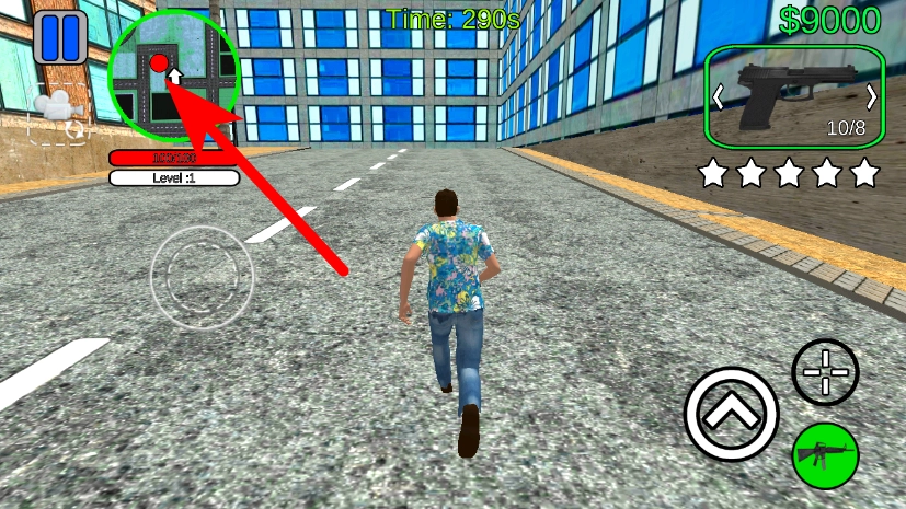 請查看左上角的地圖,按照指引前往指定目標地點,然后點擊右側(cè)的武器按鈕。