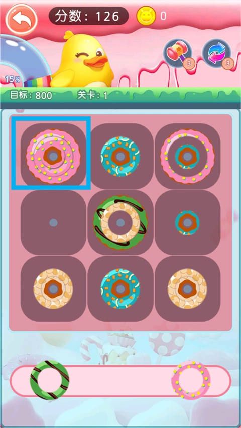 游戲里有著形形色色、色彩各異的甜甜圈,這大大提升了畫面的視覺吸引力,也讓游戲過程更添趣味性。