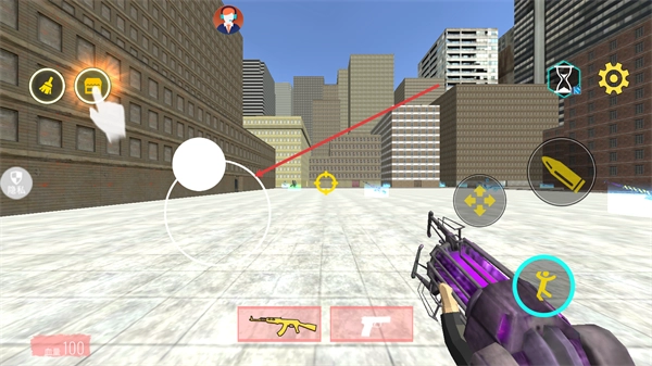 點(diǎn)擊界面上的功能按鈕,切換場(chǎng)景后操控武器,瞄準(zhǔn)前方目標(biāo),準(zhǔn)備投入戰(zhàn)斗。