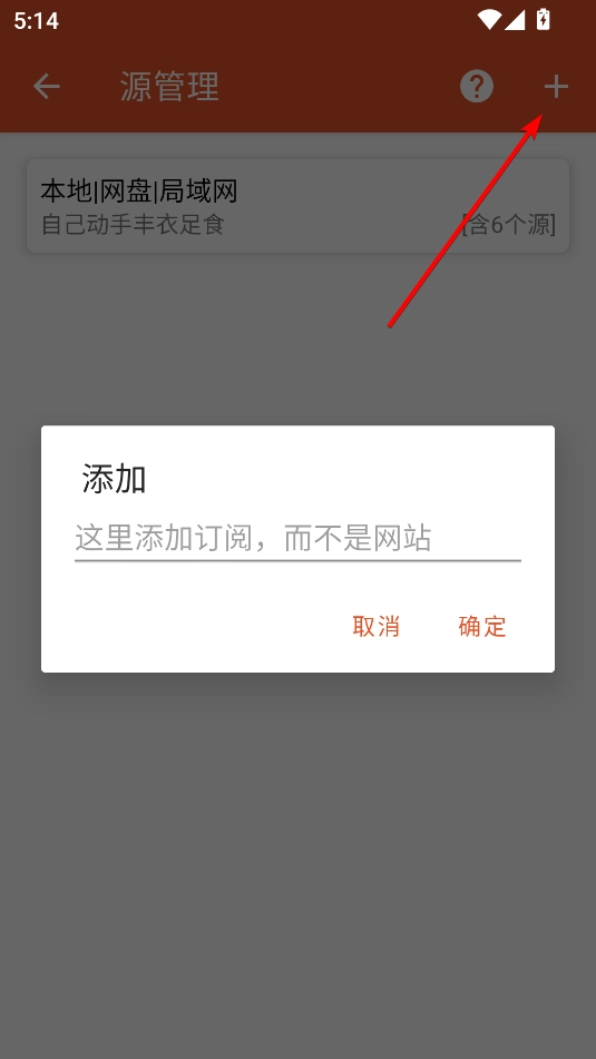 點擊右上角的+按鈕,輸入訂閱地址,點擊確定