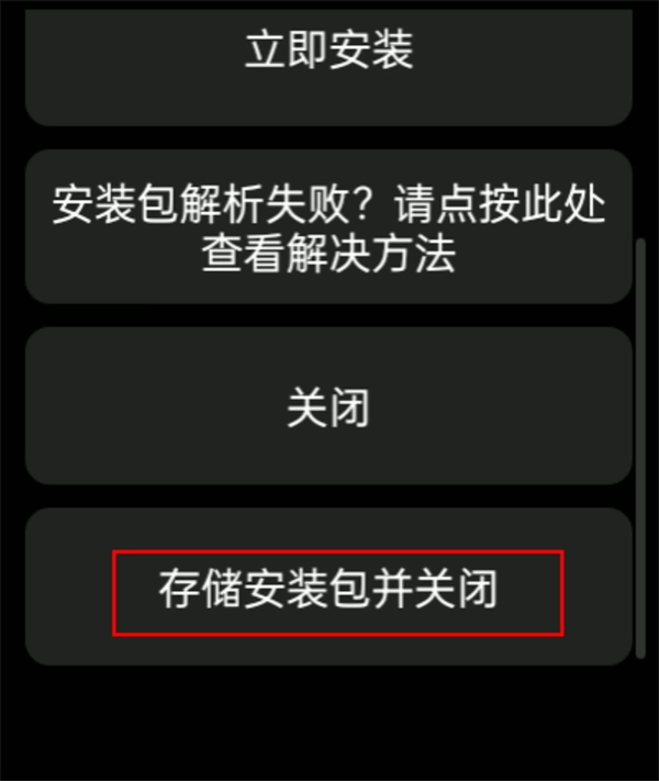點(diǎn)擊“保存安裝包并關(guān)閉”即可將安裝包備份在手表上