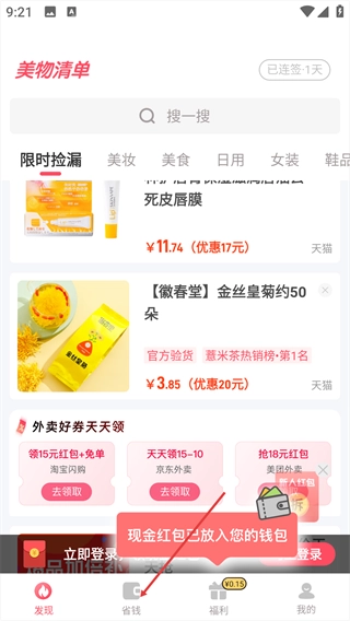 點(diǎn)擊底部【省錢】選項(xiàng),進(jìn)入對應(yīng)功能頁面。