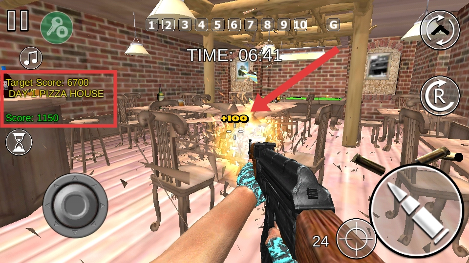 通過破壞物品來獲取分?jǐn)?shù),例如【+100】,大家需要朝著目標(biāo)分?jǐn)?shù)【Target-Score:6700】去努力。