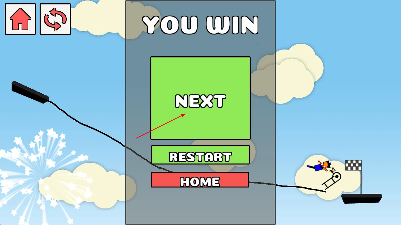 當你畫出的道路能引導小人成功避開所有陷阱,順利到達終點,就能通過當前關卡,解鎖更復雜的新關卡繼續(xù)挑戰(zhàn)。