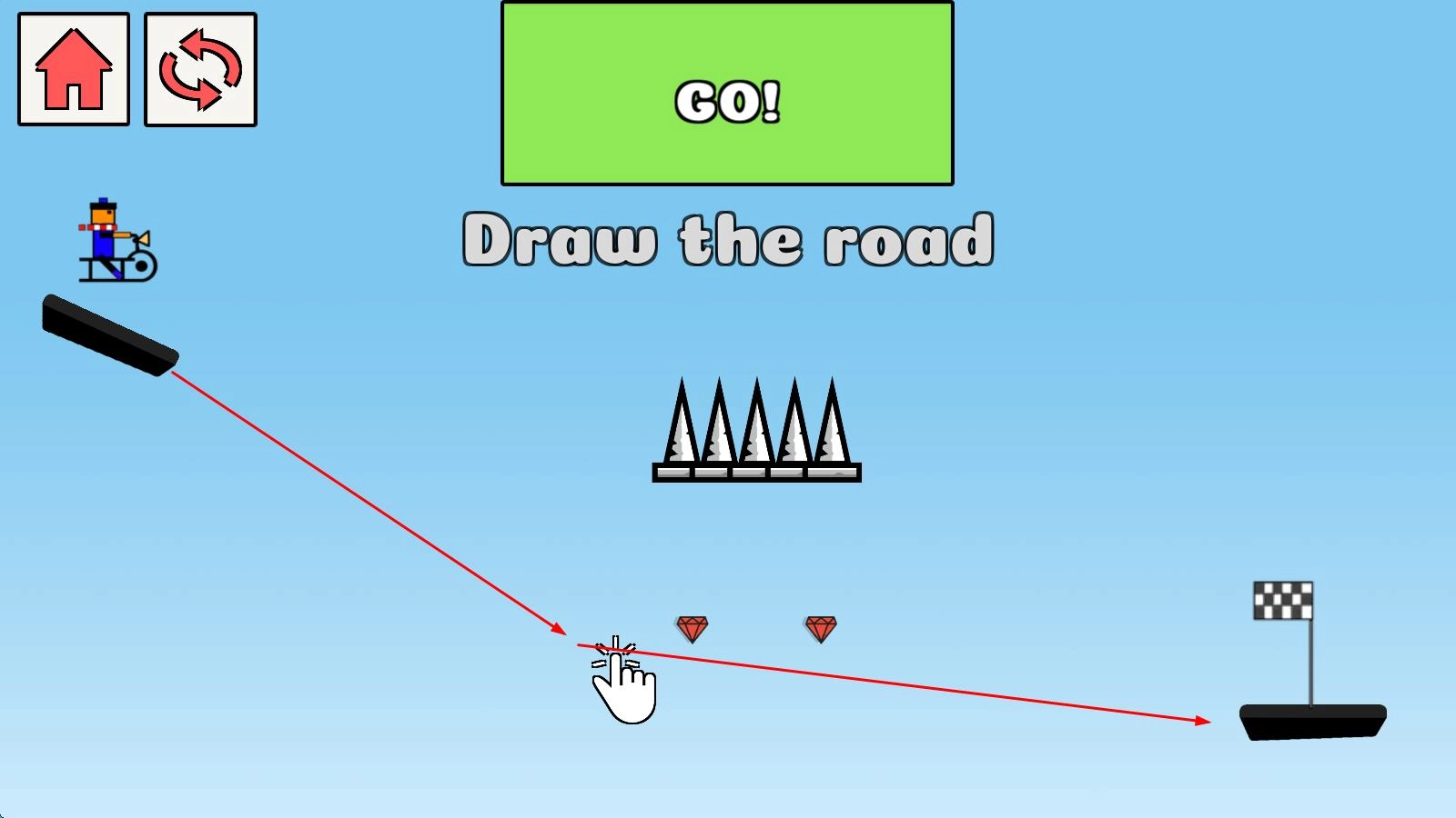 進入游戲后,先觀察小人初始位置到終點之間的陷阱分布情況,接著用手指在屏幕上畫出第一條路徑,幫助小人安全啟動并向前行進。