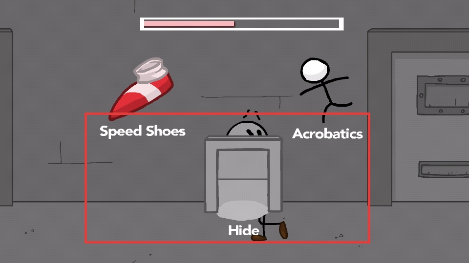 3、后續(xù)場(chǎng)景選【Speed-Shoes】【Hide】等道具動(dòng)作,借其突破障礙躲避敵人。