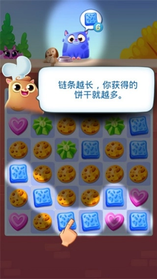 玩家需要用手指滑動(dòng)來(lái)連接相鄰的同色餅干塊以完成消除,連接的餅干塊數(shù)量越多,消除效果就越顯著,得分加成也會(huì)越高,這是拿到高分的關(guān)鍵基礎(chǔ)。2、每一個(gè)關(guān)卡都設(shè)有清晰的收集目標(biāo),比如要集齊特定顏色的餅干達(dá)到規(guī)定數(shù)量,玩家得在有限的步數(shù)里做好精準(zhǔn)規(guī)劃,優(yōu)先去消除那些大量聚集在一起的同色餅干群。3、游戲里還設(shè)置了多種功能強(qiáng)勁的道具,像能消除一整行餅干的攪拌勺,或是可以清除特定障礙的小魚(yú)干,玩家可以在關(guān)鍵的時(shí)候使用這些道具。
