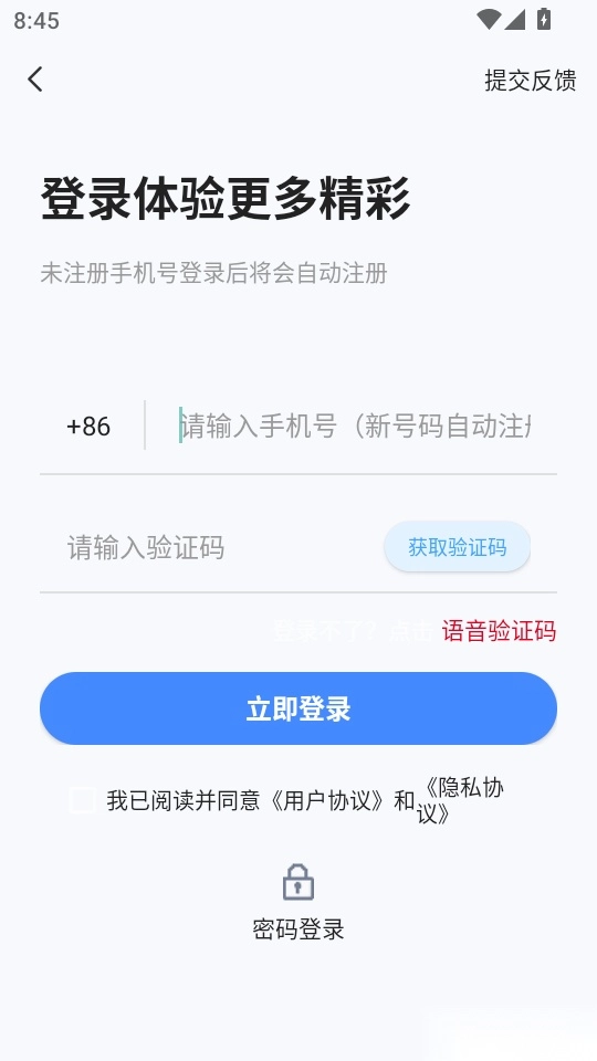 在登錄頁面輸入手機(jī)號和驗證碼后,點(diǎn)擊“立即登錄”按鈕即可進(jìn)入程序。