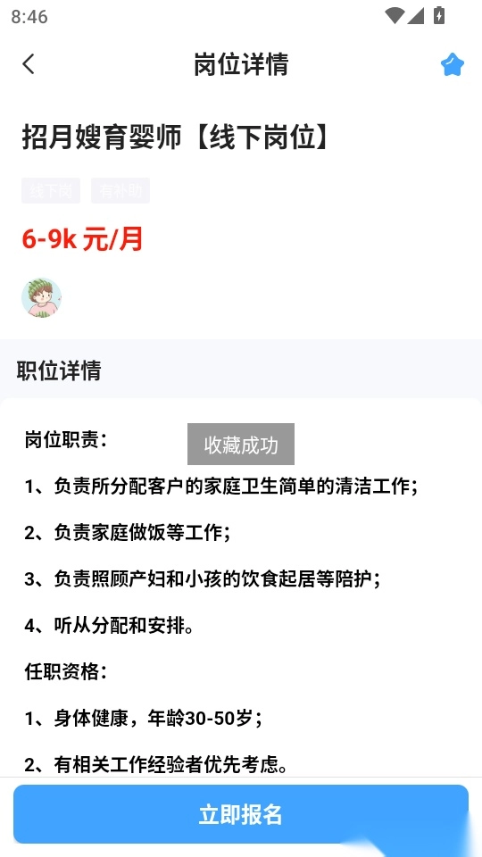最近打開兼職崗位的詳情頁面后,只需找到右上角的“☆”按鈕并點(diǎn)擊,就能完成收藏操作了。
