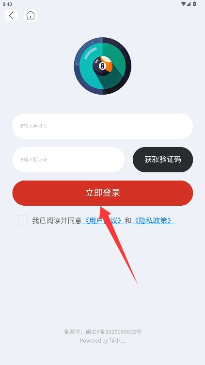 在登錄界面填寫(xiě)手機(jī)號(hào)與驗(yàn)證碼,勾選同意相關(guān)條款后點(diǎn)擊立即登錄按鈕,即可進(jìn)入應(yīng)用。