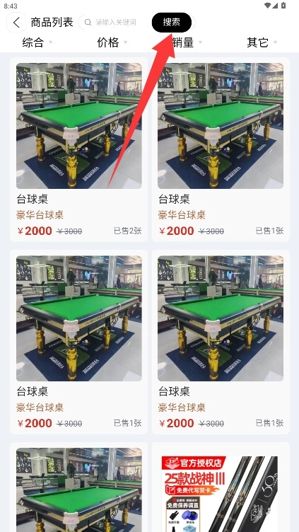 智能搜索篩選功能可支持從尺寸、材質(zhì)、價(jià)格區(qū)間等多個(gè)維度設(shè)置篩選條件,幫助用戶快速定位到目標(biāo)臺(tái)球桌商品,從而縮短選購(gòu)花費(fèi)的時(shí)間,有效提高采購(gòu)的效率。