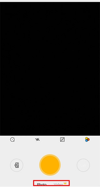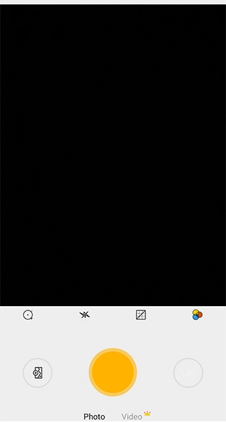 點擊正中間的黃色圓形按鈕即為快門鍵,按下該按鈕即可啟動拍攝;快門鍵的上方是基礎工具欄,從左至右依次排列著定時拍攝、閃光燈、網格以及濾鏡這幾個功能選項。