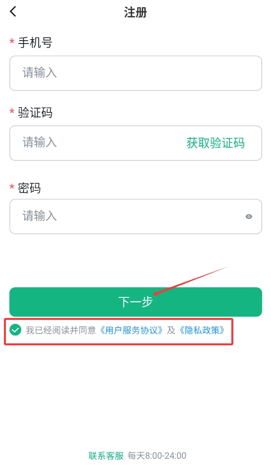 請仔細(xì)閱讀平臺的服務(wù)條款和隱私保護(hù)政策,在勾選同意相關(guān)選項(xiàng)后提交注冊申請,系統(tǒng)會自動為您完成賬號開通流程。
