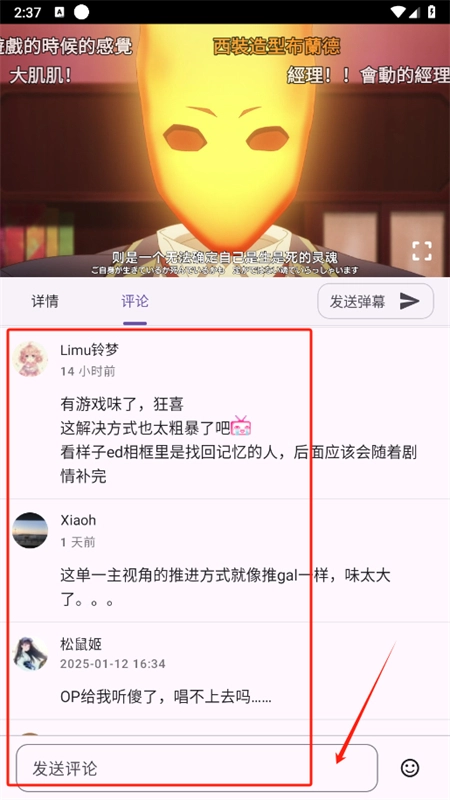 還可以查看該動(dòng)漫的各種評(píng)論,也可以發(fā)送評(píng)論等