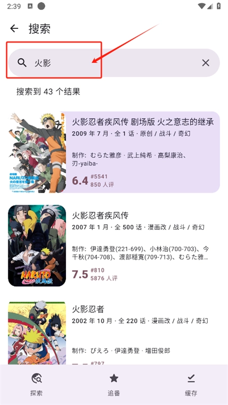 點(diǎn)擊搜索按鈕后,輸入關(guān)鍵詞就能快速找到想要觀看的動(dòng)漫作品