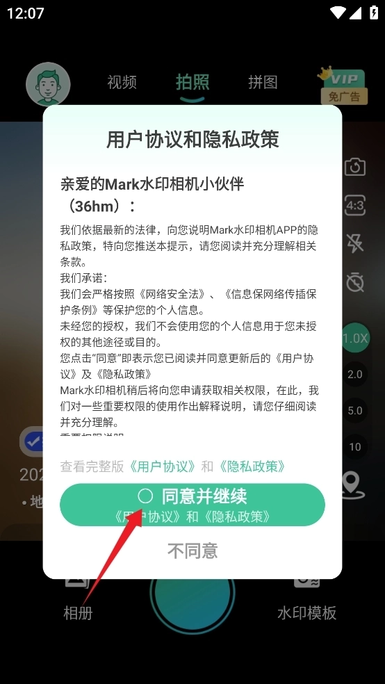 勾選并同意協(xié)議,進(jìn)入到相機(jī)拍攝界面