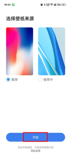 授予相應(yīng)權(quán)限后,接下來用戶需要挑選壁紙的來源——是選用桌面自帶的壁紙,還是選擇X桌面推薦的壁紙,這可以依據(jù)個人喜好來決定。這里建議選擇軟件推薦的壁紙,選好之后點擊下方的“開始”按鈕即可。