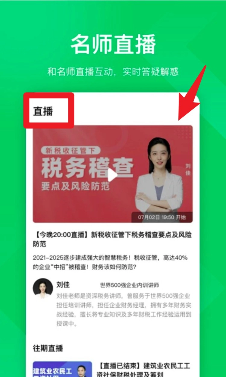 點(diǎn)擊首頁的直播入口就能進(jìn)入名師直播課,聽課過程中可以隨時(shí)提問,還能回看往期課程內(nèi)容來復(fù)習(xí)鞏固。